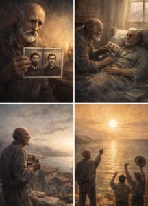 चित्रकार ने बूढ़े के बेटों के खिले हुए चेहरों को धयान से देखा और बोला –