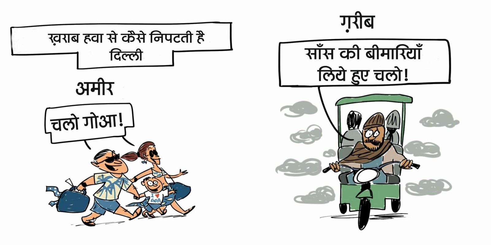 मगर सवाल यह बनता है कि क्या एयर प्यूरीफायर प्रदूषण से लड़ने के लिए काफ़ी हैं और इससे भी ज़रूरी सवाल यह कि उनका क्या जो यह ख़रीदने की कूव्वत नहीं रखते? उन्हें प्रदूषण से मरने के लिए ख़ुद को छोड़ देना चाहिए? क्या आज सरकार और इस व्यवस्था के पैरोकारों द्वारा प्रदूषण और पर्यावरण को लेकर पूछे जाने वाले इन्हीं ज़रूरी सवालों को दबा नहीं दिया जा रहा है? क्या हमें यह नहीं पूछना चाहिए कि प्रदूषण के इन हालात के लिए कौन ज़िम्मेदार है और कौन-सा वर्ग सबसे अधिक इसका खामियाज़ा भुगत रहा है?