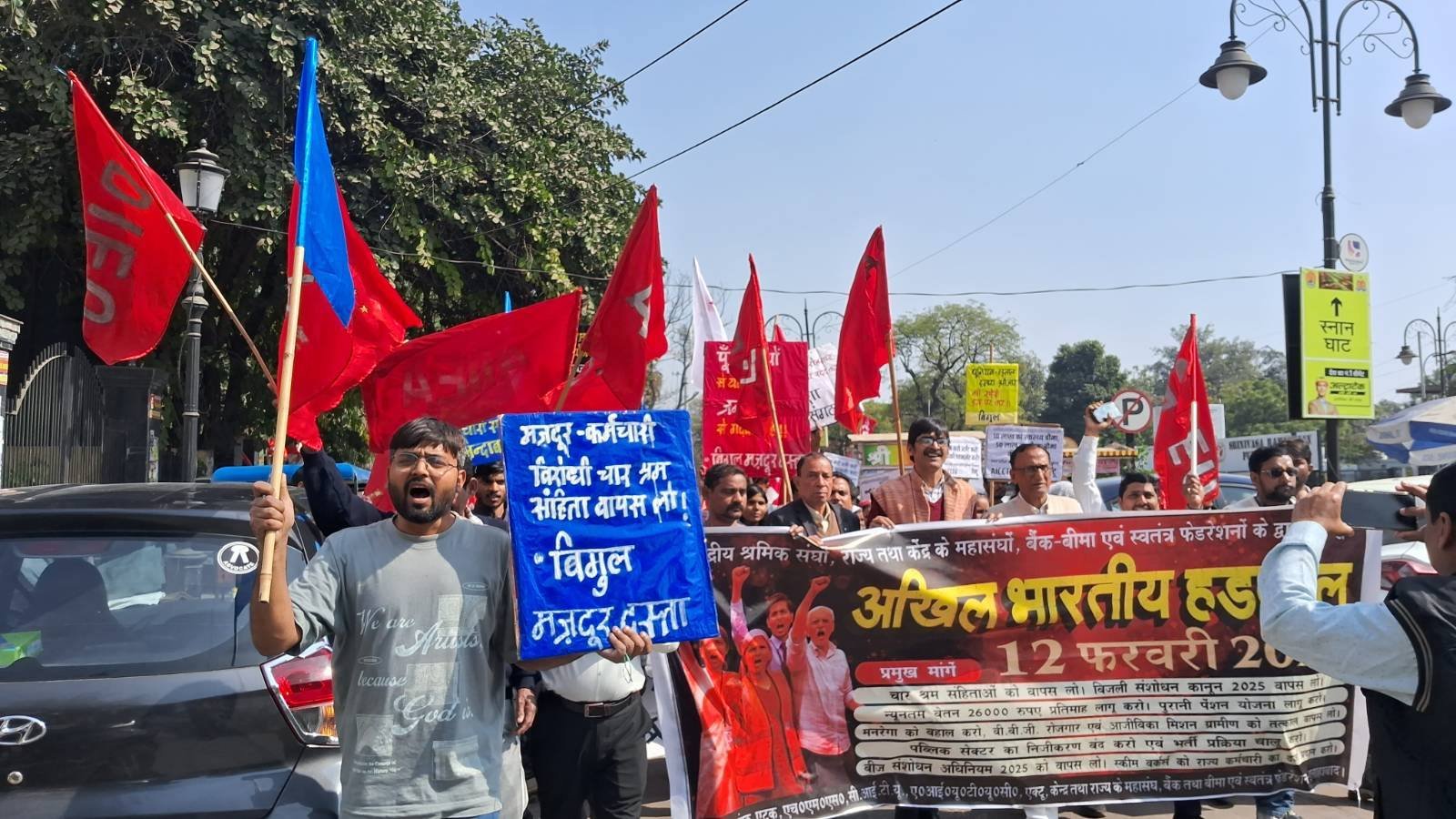 12 फ़रवरी की हड़ताल के दिन सिर्फ़ एलआईसी ने पूर्ण हड़ताल का कॉल दिया था। ‘बिगुल’ के कार्यकर्ताओं ने आन्दोलन स्थल पर जाकर हड़ताल को समर्थन दिया। इसके बाद ‘बिगुल’ के कार्यकर्ता ऑल इंडिया लोको रनिंग स्टाफ़ एसोसिएशन के कार्यक्रम में गये, जहाँ उन्होंने हड़ताल के समर्थन में बात रखी और गीत प्रस्तुत किये। बिजली विभाग के कर्मचारियों ने भी हड़ताल के समर्थन में कार्यक्रम आयोजित किया गया था जिसमें ‘बिगुल’ और ‘दिशा’ के कार्यकर्ताओं ने भागीदारी की और सभा में बात रखी तथा गीत प्रस्तुत किये। बीएलडब्ल्यू में आम हड़ताल के समर्थन में वर्कशॉप गेट से प्रशासनिक भवन तक का मार्च छुट्टी के समय निकाला गया था। इस मार्च में भी इस अभियान की टोली ने भागीदारी की। इस पूरे अभियान के दौरान इस टोली ने हज़ारों पर्चे वितरित किये।