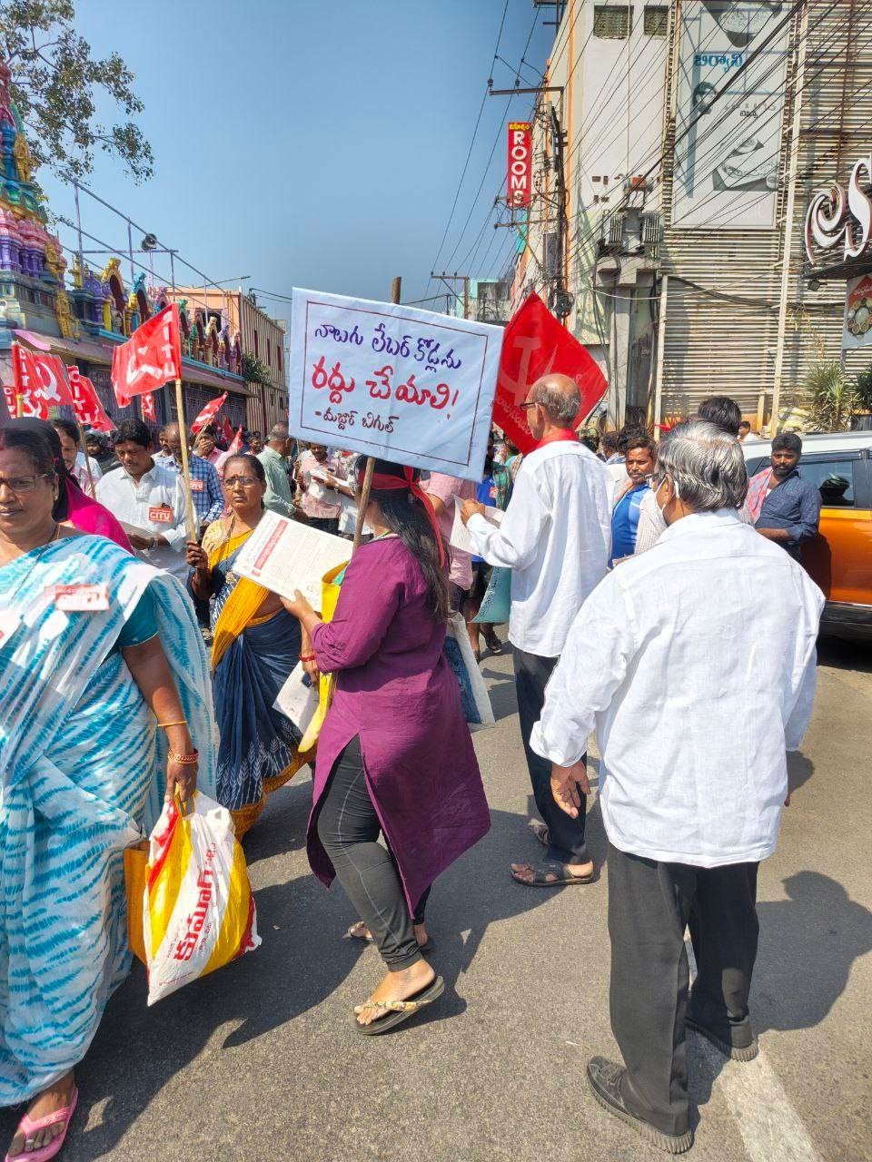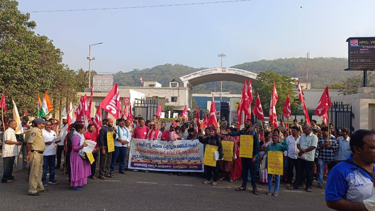आन्ध्र प्रदेश के विशाखापत्तनम, विजयवाड़ा, ताडेपल्ली, गुडीवाड़ा और मछलीपत्तनम शहरों में हुई हड़ताल में ‘मज़दूर बिगुल’ की टीम ने हिस्सा लिया। विशाखापत्तनम में हिन्दुस्तान शिपयार्ड,  हिन्दुस्तान पेट्रोलियम कॉरपोरेशन और एलआईसी हेडक्वार्टर पर पर्चे बाँटकर एकदिनी हड़ताल को तेज़ करने की बात कही गयी। साथ ही, शहर में हुए जुलूस और गाँधी प्रतिमा पर हुई जन सभा में हिस्सा लिया गया और चार लेबर कोड के ख़िलाफ़ लड़ाई को अनिश्चितकालीन आम हड़ताल में तब्दील करने की अपील की गयी। विजयवाड़ा शहर में भी ‘मज़दूर बिगुल’ के स्थानीय साथियों ने केन्द्रीय ट्रेड यूनियनों द्वारा आयोजित एक बड़े जुलूस में भागीदारी की। गुडीवाड़ा में ‘श्रमिक हक्कुला पोराटा संघम’ (SHPS) ने ‘गुडीवाड़ा इण्डस्ट्रियल और ऑटोमोबाइल वर्कर्स यूनियन’ की हड़ताल को नेतृत्व दिया। यह यूनियन SHPS से जुड़ी हुई है और इसके सदस्यों ने आम हड़ताल के समर्थन में एक बाइक रैली निकाली। SHPS से कॉमरेड रघु ने मज़दूरों की सभा को सम्बोधित किया और उनका आह्वान किया कि अगर आज अनिश्चितकालीन आम हड़ताल की तरफ़ नहीं बढ़ते हैं तो कल बहुत देर हो जायेगी। ‘बिगुल’ के कार्यकर्ताओं ने मंगलगिरी-ताडेपल्ली कॉर्पोरेशन और मछलीपत्तनम शहर में हुई विरोध सभाओं में भी हिस्सा लिया, जिसमें चार लेबर कोड को तुरन्त रद्द करने की माँग की गयी।