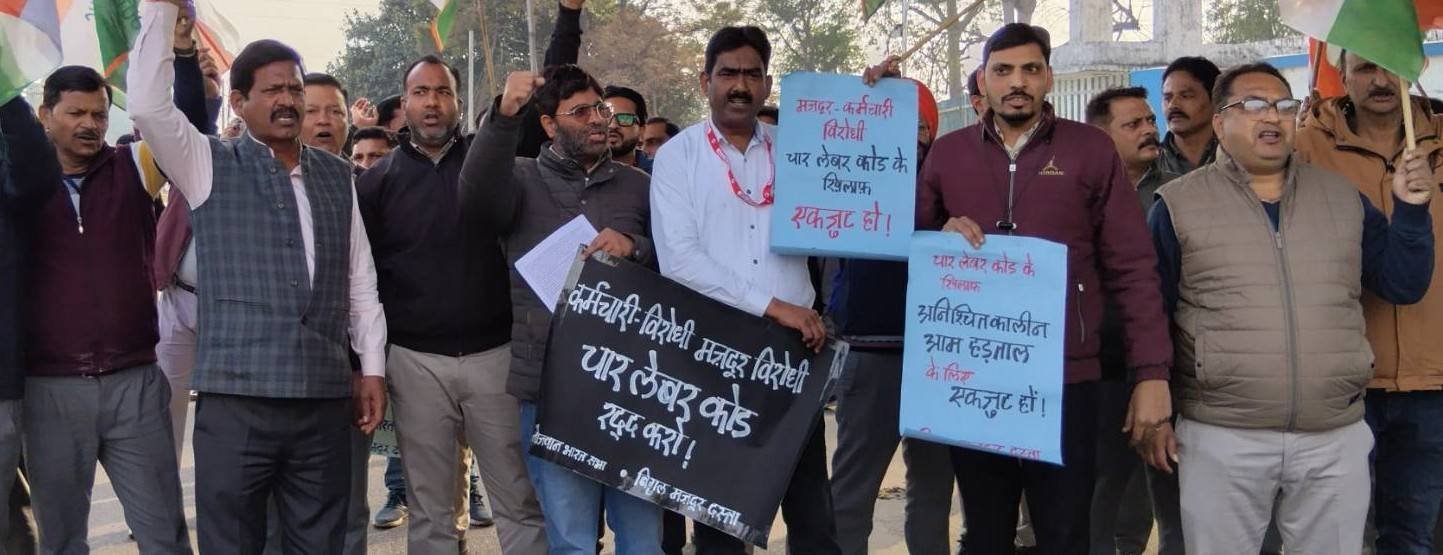 हरिद्वार भेल की कालोनियों में घर-घर संपर्क के दौरान मज़दूरों से चार लेबर कोड के विरुद्ध संघर्ष की आवश्यकता को लेकर बहुत ही सकारात्मक प्रतिक्रियाएँ मिलीं। ज़्यादातर मज़दूरों को इसकी गम्भीरता का एहसास था और वे इसके ख़िलाफ़ संघर्ष करने को तैयार थे लेकिन भेल मज़दूरों की विभिन्न यूनियनों में 12 फ़रवरी की एकदिवसीय हड़ताल को लेकर अनिश्चितता की स्थिति थी। कॉलोनी अभियान के दौरान टीम की कुछ यूनियन पदाधिकारियों से भी मुलाक़ात हुई। हड़ताल को लेकर उनका कहना था कि अभी उनकी यूनियन में इसपर कोई ठोस रणनीति नहीं बनी है। कुछ केन्द्रीय यूनियन/फ़ेडरेशन से जुड़े हुए पदाधिकारियों ने कहा कि इसपर ऊपर से जो दिशा-निर्देश आयेंगे, हम उसी पर चलेंगे। इसके साथ ही रेलवे, बैंक और एलआईसी के कर्मचारियों ने हमारे अभियान का स्वागत किया। अपने व्हाट्सएप ग्रुपों में हमारे पर्चे डाले। यूनियन लीडरों से मुलाक़ात करवायी। बहुत से मज़दूर-कर्मचारी लेबर कोड के लागू होने से चिन्तित थे और अपनी यूनियनों की कार्यप्रणाली को लेकर आलोचनात्मक थे। वहीं दूसरी तरफ़ हरिद्वार रेलवे के ज़्यादातर कर्मचारियों को 12 फ़रवरी की हड़ताल के बारे में कोई जानकारी ही नहीं थी! उनका कहना था कि ये तो आप लोगों से हमें पता चल रहा है कि ऐसी कोई हड़ताल भी होने वाली है। देहरादून रेलवे के कर्मचारियों ने बताया कि ऊपर से अभी कोई ठोस गाइडलाइंस नहीं आयी है। इसका परिणाम भी 12 फ़रवरी की हड़ताल में दिखायी दिया। हरिद्वार रेलवे में कुछ भी नहीं हुआ। देहरादून रेलवे में कर्मचारियों ने काली पट्टी और काला बैज लगाकर काम किया लेकिन काम का बहिष्कार नहीं किया। यही स्थिति बैंक, बीमा और डाक सेक्टर में रही! कुछ बैंकों और एलआईसी ऑफिस के सामने थोड़ी देर के लिए कर्मचरियों ने बाहर आकर नारे लगाये और वापस काम पर चले गये। हरिद्वार भेल के फ़ाउन्ड्री गेट पर संयुक्त प्रदर्शन में ‘नौजवान भारत सभा’ और ‘बिगुल मज़दूर दस्ता’ की भागीदारी रही। शाम 4 बजे हरिद्वार भेल के फ़ाउण्ड्री गेट पर सात से आठ यूनियनों और संगठनों ने चार लेबर कोड के ख़िलाफ़ प्रदर्शन किया और अपनी सभा की।