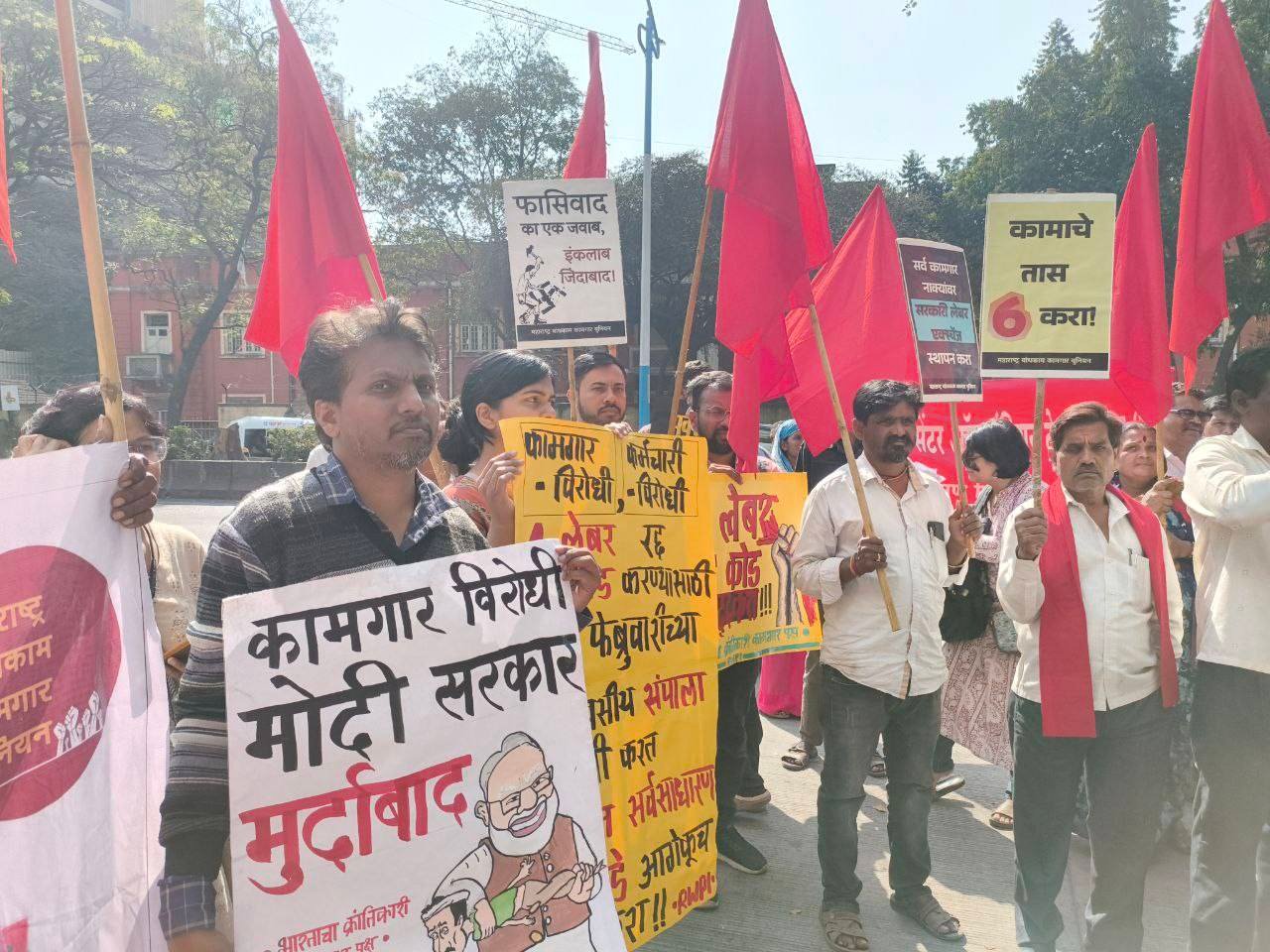 RWPI की तरफ से महाराष्ट्र में मुम्बई, पुणेअहमदनगर में चार लेबर कोड विरोधी अभियान चलाया जा रहा है जिसमें अबतक मुख्यतः बैंक, रेलवे, पोस्ट और टेलीग्राम के मज़दूरों-कर्मचारियों को लेबर कोड के फ़ासीवादी हमले से परिचित कराया गया है। इसके अलावा मुम्बई में बृहन्मुम्बई विद्युत आपूर्ति एवं यातायात (BEST) जो मुम्बई की मुख्य सार्वजनिक बस परिवहन और बिजली प्रदाता संस्था है और शहर के कुछ लेबर चौक पर भी अभियान चलाया गया। पुणे में मार्केटयार्ड में बोझा ढोने वाले मज़दूर, निर्माण मज़दूर, जीवन बीमा निगम, भारत संचार निगम लिमिटेड (BSNL), महाराष्ट्र स्टेट इलेक्ट्रिसिटी बोर्ड में और अहमदनगर में स्थानिक महाराष्ट्र औद्योगिक विकास निगम में भी अभियान चलाया गया। आमतौर पर सभी विभागों के मज़दूरों के बीच चार लेबर कोड के ख़िलाफ़ गुस्सा है और मौजूदा यूनियन नेतृत्व द्वारा उठाये जा रहे प्रतीकात्मक क़दम और संघर्ष की दिशा को तय करने में देरी की समस्या है। इन सभी जगहों पर RWPI ने हस्तक्षेप करते हुए आज़ादी के बाद मज़दूर वर्ग पर हुए इस सबसे बड़े हमले के ख़िलाफ़ निर्णायक संघर्ष शुरू करने की बात कही। 12 फ़रवरी की हड़ताल में शिरकत करते हुए संघर्ष को अनिश्चितकालीन आम हड़ताल में तब्दील करने का आह्वान किया। पुणे में ‘महाराष्ट्र निर्माण मज़दूर यूनियन’ के बैनर तले निर्माण मज़दूर भी बड़ी संख्या में इस हड़ताल में शामिल रहे।