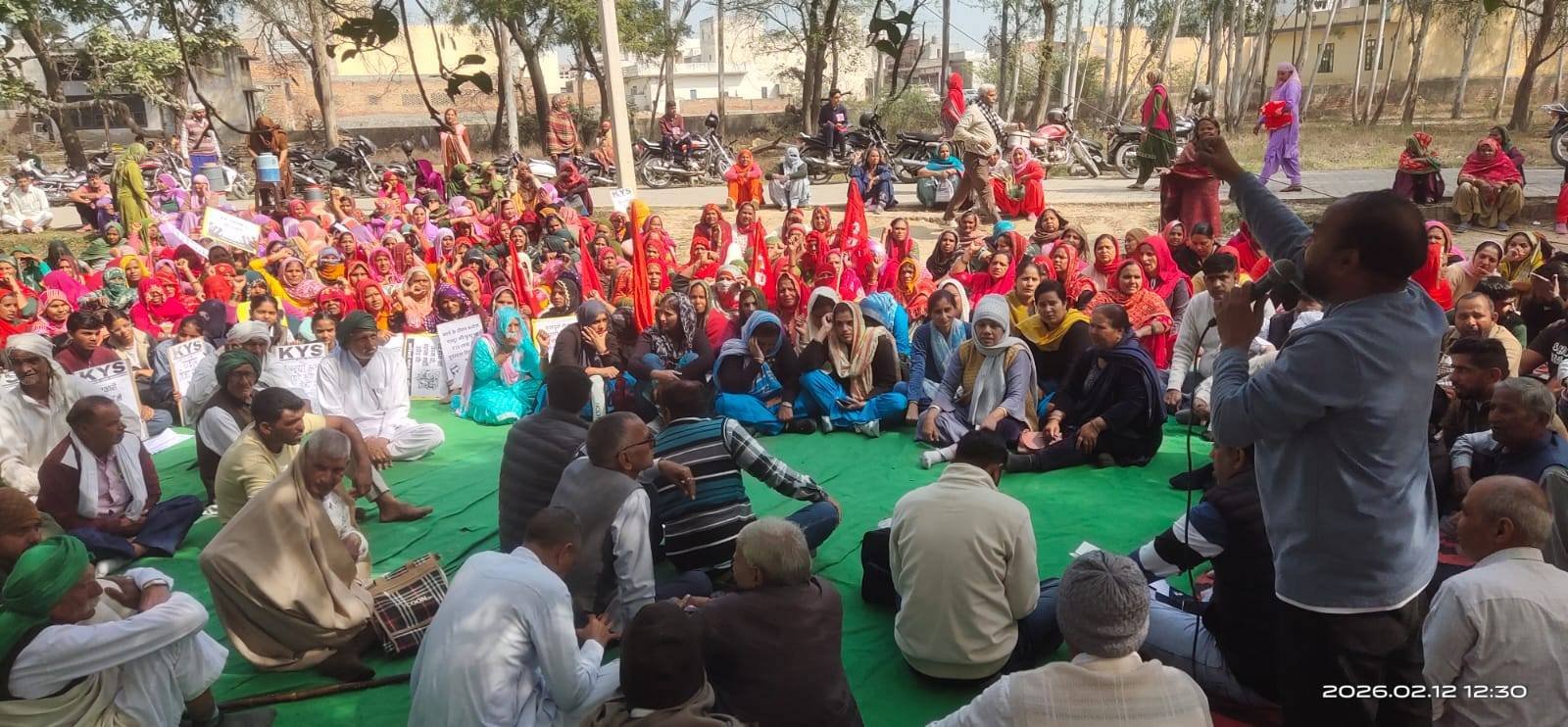 हरियाणा के कलायत में देशव्यापी हड़ताल के तहत मज़दूरों, कर्मचारियों व ग़रीब किसान संगठनों ने शहर में रोष प्रदर्शन किया। ‘क्रान्तिकारी मनरेगा मज़दूर यूनियन’ ने भी हड़ताल में बढ़-चढ़कर भागीदारी की। मनरेगा यूनियन द्वारा बीडीपीओ कार्यालय में मनरेगा के तहत काम की माँग को लेकर ज्ञापन सौंपा गया। 12 फ़रवरी को कलायत के प्रदर्शन में मनरेगा मज़दूरों और ग़रीब किसानों के साथ बड़ी संख्या में कच्चे कर्मचारी, आँगनवाड़ी वर्कर, आशा वर्कर, मिड-डे मील वर्कर, ग्रामीण सफ़ाई कर्मचारी आदि शामिल हुए और यह ऐलान किया कि यदि समय रहते कच्चे कर्मचारियों को पक्का दर्जा नहीं दिया गया, तो आन्दोलन और तेज़ किया जायेगा। जनसभा को सम्बोधित करते हुए मनरेगा यूनियन के अजय ने कहा, “चार लेबर कोड के ज़रिये मोदी सरकार मज़दूरों के बचे-खुचे काग़ज़ी अधिकारों को भी छीनने पर तुली हुई है। यह सरकार लगातार मज़दूरों की ताक़त को कमज़ोर कर रही है। साथ ही ग्रामीण क्षेत्रों में ‘विकसित भारत – रोज़गार एवं आजीविका गारण्टी मिशन (ग्रामीण), 2025’ (VB-GRAM-G) जैसी योजनाएँ दरअसल रोज़गार गारण्टी को ही ख़त्म करने की साज़िश हैं। ऐसी योजनाओं के ज़रिये सरकार अपनी क़ानूनी जवाबदेही से बचना चाहती है।” उन्होंने आगे कहा कि 125 दिनों के रोज़गार का दावा महज़ एक खोखला नारा है। सरकार ने स्वयं संसद में स्वीकार किया है कि हाल के वर्षों में मज़दूरों को औसतन केवल 50.35 दिन का ही काम मिला है। मौजूदा बजट में भी VB-GRAM-G के तहत प्रावधान केवल लगभग 52 कार्यदिवसों के लिए ही फण्ड उपलब्ध कराते हैं। गाँव सिमला के अनिल ने बताया कि मनरेगा क़ानून स्वयं अधूरा है, क्योंकि यह केवल 100 दिनों के रोज़गार तक सीमित है, जबकि ज़रूरत साल के 365 दिन क़ानूनी रूप से गारण्टीशुदा स्थायी रोज़गार की है। रोष प्रदर्शन में ‘क्रान्तिकारी मनरेगा मज़दूर यूनियन’ ने कहा कि जब तक मज़दूर वर्ग स्वयं संगठित होकर संघर्ष नहीं करेगा, तब तक मज़दूर-विरोधी नीतियाँ और अधिक आक्रामक ढंग से थोपी जाती रहेंगी। इसलिए ग्रामीण और शहरी मज़दूरों से आह्वान है कि वे देशव्यापी हड़ताल को व्यापक बनाते हुए इसे अनिश्चितकालीन आम हड़ताल में बदलने की दिशा में आगे बढ़ें।