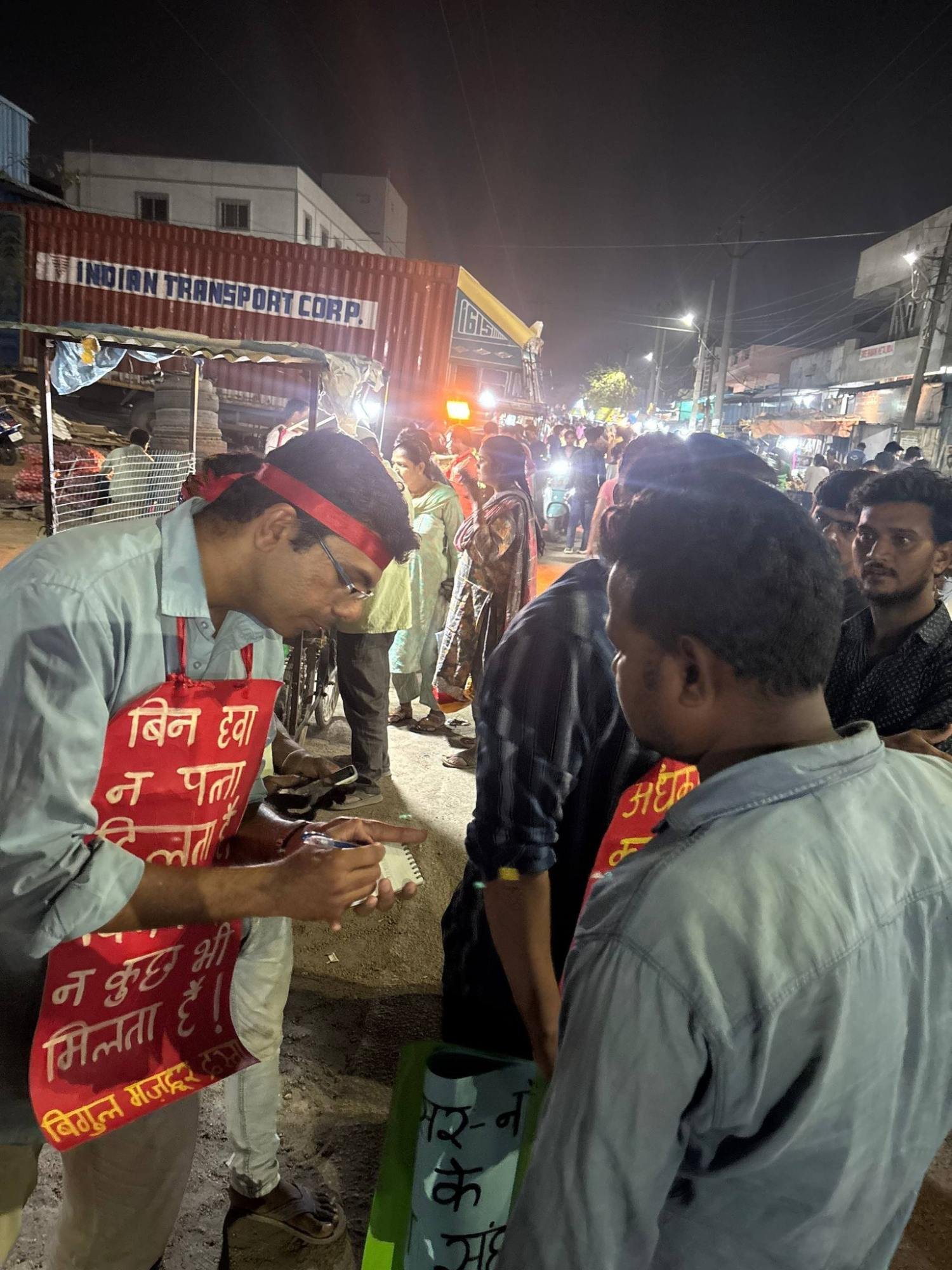 अभियान के दौरान कुछ ठेकेदारों ने अभियान को बाधित करने की कोशिश की, लेकिन मज़दूरों ने नारा लगाकर मज़दूर बिगुल के कार्यकर्ताओं का समर्थन किया और अंत तक साथ खड़े रहे। कई मज़दूरों ने आगे बातचीत के लिए अपना सम्पर्क दिए।