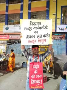 ज्ञात हो कि कल शाम यूपी पुलिस ने चार मज़दूर कार्यकर्ताओं—रुपेश, सृष्टि, आकृति और मनीषा—को नोएडा मेट्रो स्टेशन से ग़ैर-कानूनी तरीके से उठाया। अब तक यूपी पुलिस उनकी स्थिति के बारे में कोई भी जानकारी देने से इनकार कर रही है। आज, जब दो वकील ज़मानत के लिए सूरजपुर कोर्ट गए थे, तो वहाँ मौजूद मज़दूर कार्यकर्ताओं के साथ उन्हें भी यूपी पुलिस ने ग़ैर-कानूनी तरीके से हिरासत में ले लिया। यह सब यूपी पुलिस की खुली गुंडागर्दी को दर्शाता है।
