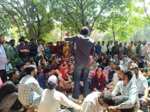 बिगुल मज़दूर दस्ता के साथियों ने हड़ताल स्थल पर सभा को सम्बोधित करते हुए बताया कि आज आईएमटी मानेसर में उठी वेतन बढ़ोतरी और मज़दूरों के जायज़ हक-अधिकारों की लड़ाई अब पूरे गुड़गांव, बिनौला, धारूहेड़ा और बावल सहित ऑटोमोबाइल और एक्सपोर्ट क्षेत्रों में फैल रही है। मज़दूरों की मांगें पूरी तरह जायज़ हैं—न्यायपूर्ण वेतन, बेहतर कार्य-परिस्थितियाँ और ठेका प्रथा का अंत।