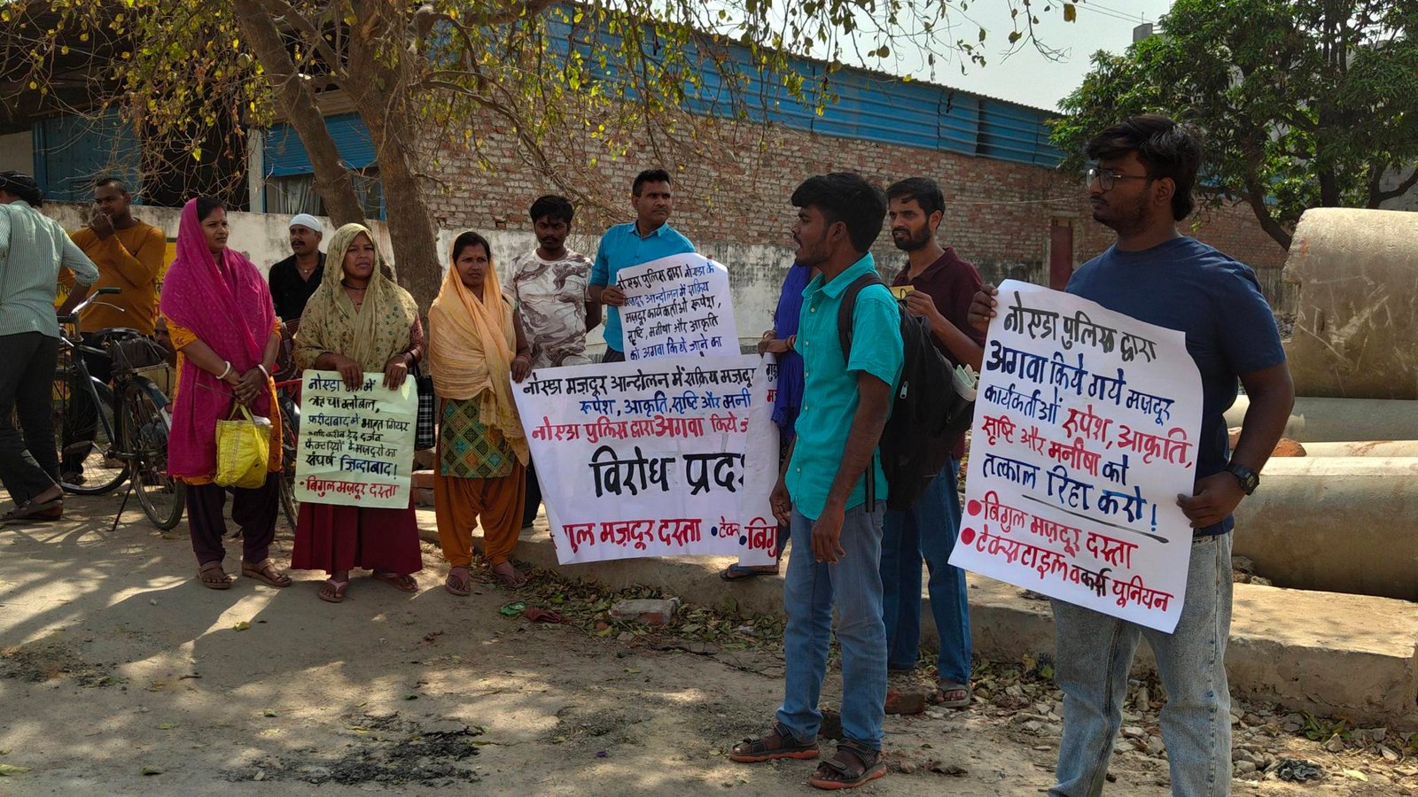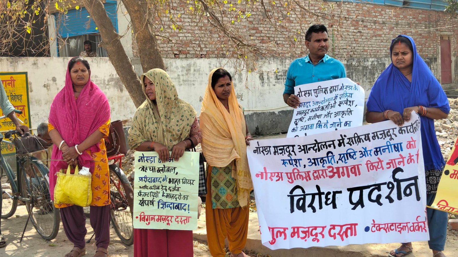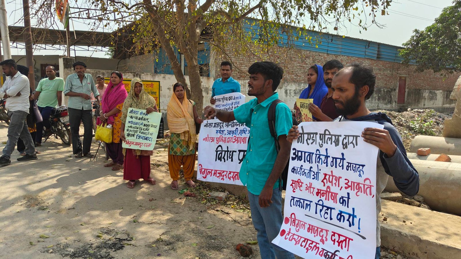 बिगुल मज़दूर दस्ता के कार्यकर्ताओं ने कहा कि देश भर में हो रहे मज़दूर आंदोलन ने फ़ासीवाद के असली चेहरे को बेनक़ाब कर दिया है। पूंजीपतियों के इशारे पर उत्तर प्रदेश की फ़ासीवादी योगी सरकार मज़दूर आंदोलन का बर्बर दमन करने पर उतारू है। स्थिति इतनी भयानक है कि आन्दोलन के बाद घर जा रहे साथी रूपेश, आकृति, सृष्टि और मनीषा के साथ उत्तर प्रदेश पुलिस ने बोटेनिकल गार्डन मेट्रो स्टेशन पर सीसीटीवी कैमरे के सामने मारपीट की और जबरन उत्तर प्रदेश पुलिस की गाड़ी में बैठा कर लेकर चली गई। इन्होंने महिला साथियों के साथ पुरुष पुलिसकर्मियों के साथ भी मारपीट की और उनको अगवा कर ले गए। 24 घण्टे बीत जाने के बाद भी अभी तक कार्यकर्ताओं को कहांँ रखा गया है नहीं मालूम चल पा रहा है।