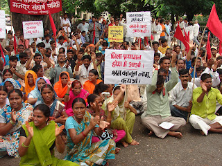बड़ी संख्‍या में एकजुट मजदूर
